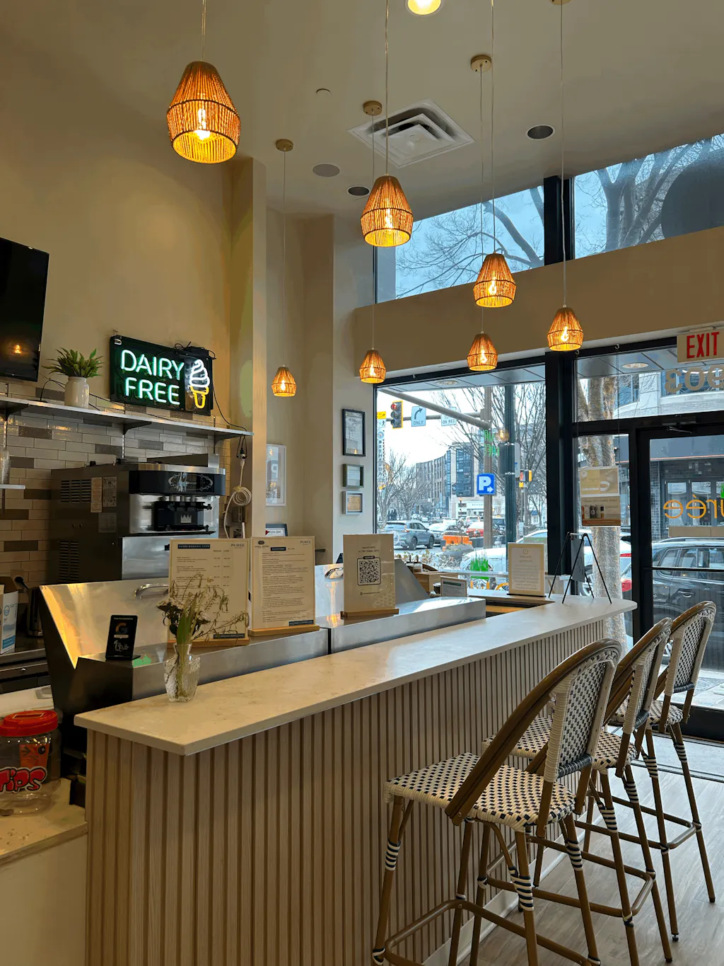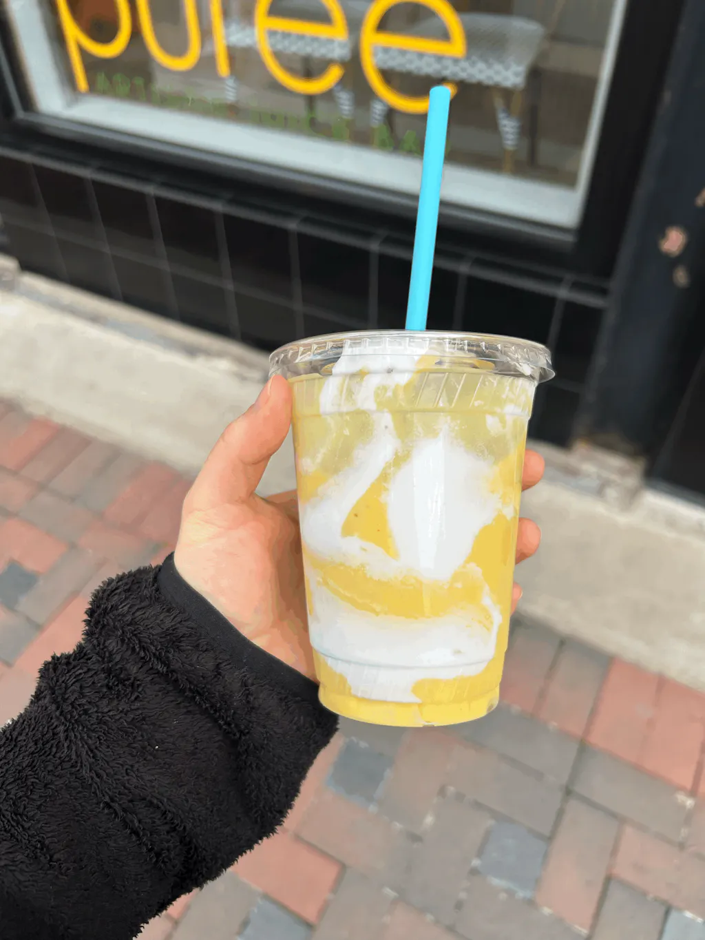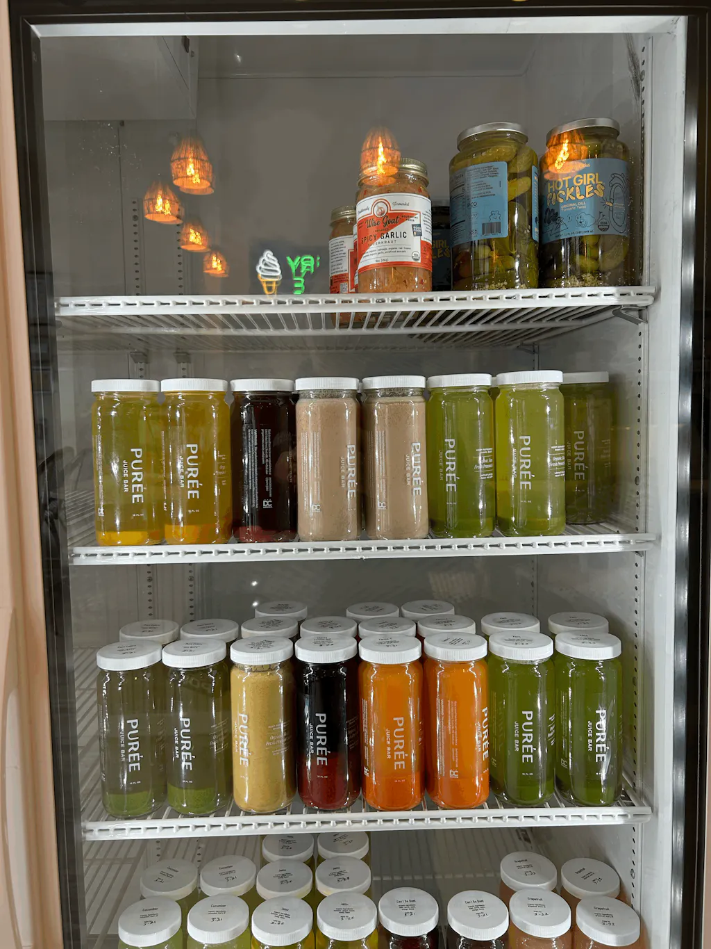 Charming health food spot, found on accident before a hair appointment. I got the sunshine smoothie (which includes mango, pineapple, jamu, saffron extract, coconut cream). The inside is small and clean. A tad pricy, but worth it in my opinion for quality ingredients.